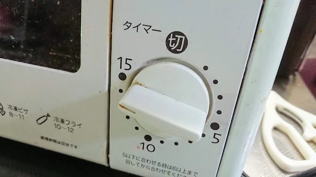 トビラを閉めたらトースターの限界時間までまわします。わが家の物は15分までで温度調節機能はありません。庫内の温度は一般的なものならだいたい200度くらいまで上がります。